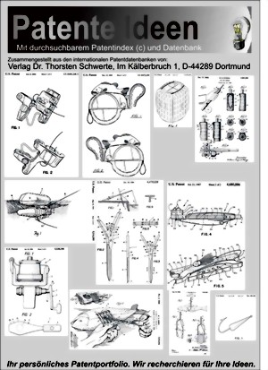 Normalerweise können es sich nur Firmen leisten umfangreiche Patentrecherchen, wie die hier angebotene, erstellen zu lassen. Die Zusammenstellung solcher Sammlungen in gut archivierbarem Format ist aufwendig und setzt kostenpflichtige Datenbankprogramme voraus. Manche amerikanische Firmen berechnen für die Recherche bis zu 3,50 Euro pro Patent! Unser Verlag bietet Ihnen hier diese Leistungen zu einem unschlagbar niedrigen Preis an. Sollte Ihnen ein Sie interessierendes Thema fehlen, so fordern Sie uns und wir erstellen Ihnen ein Angebot, zu dem Sie nicht "Nein" sagen können (allerdings nur für private und nicht kommerzielle Zwecke, für Firmenanfragen existieren andere Bedingungen (Anfragen erwünscht)).